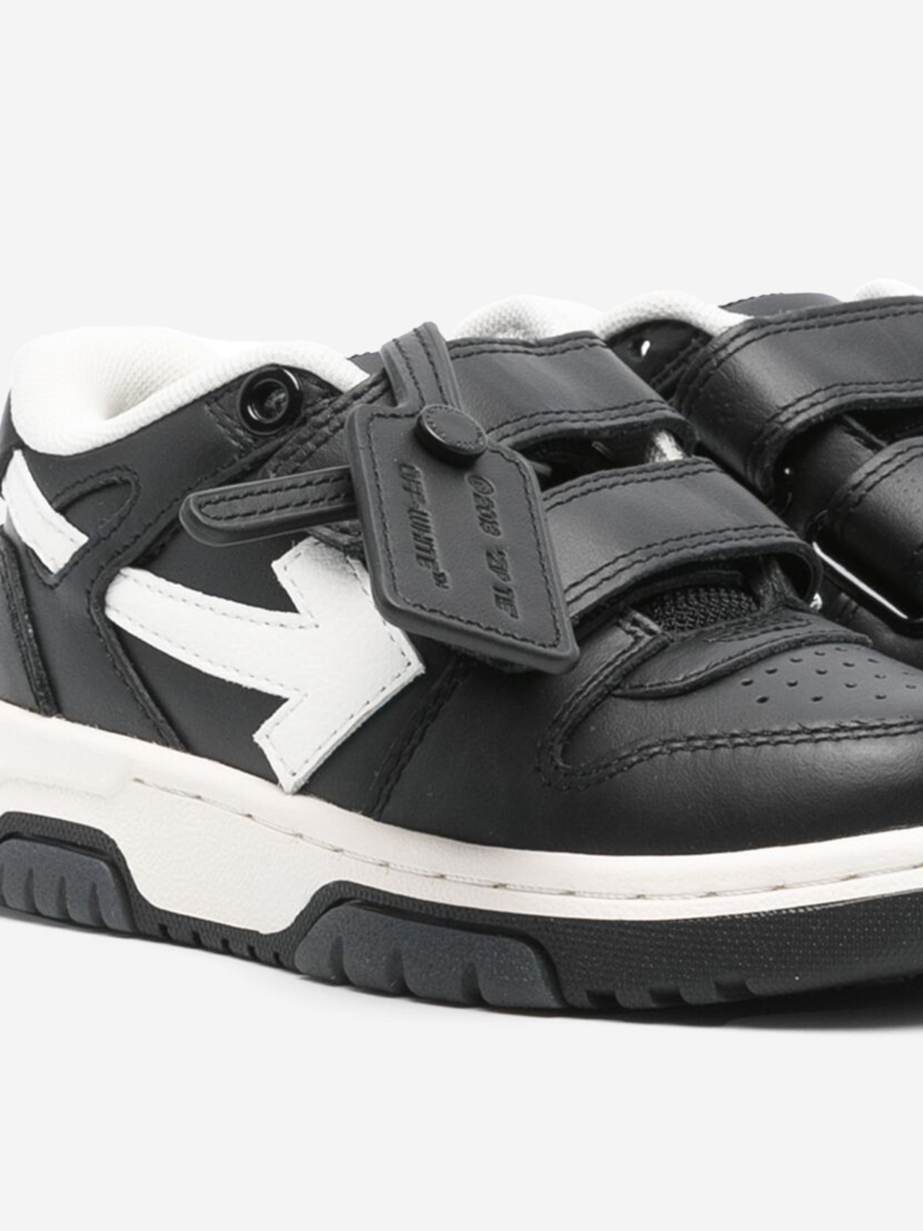 Introducing the Kids Out Of Office Straps Trainers in Black by Off-White, a timeless addition to your child's wardrobe, ideal......